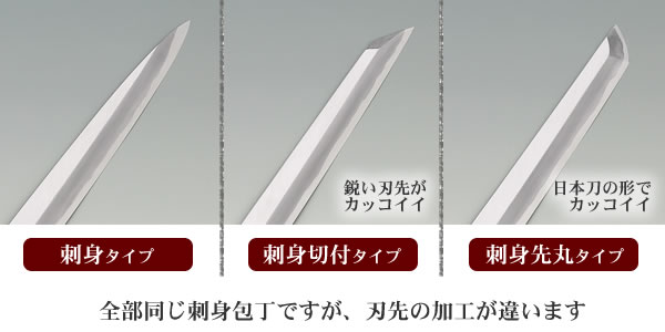最左邊的「刺身タイプ」的刀尖設計跟其他刀具不同!