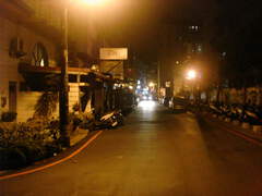 Night, around white building