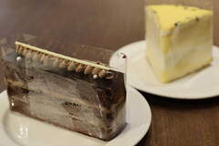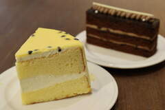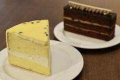 Album: カフェトリコ CAFE TRICOT コーンスープ、アサリのリゾット、カキフライのリゾット、生チョコケーキ、パッションフルーツのケーキ、エスプレッソ