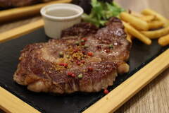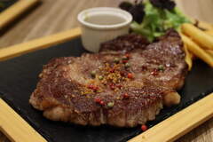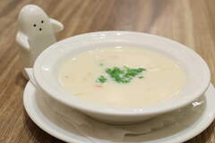 Browse photos from album "カフェトリコ CAFE TRICOT コーンスープ、サーロインステーキ、骨付きカルビ ステーキ、里芋のチーズケーキ、エスプレッソ"